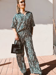 You'll stay comfortable all day and night in these high-waisted teal zebra print pants. Made from lightweight, flowy fabric, they keep you cool and comfortable while adding a fun, bold touch to your outfit. The non-see-through material ensures confidence wherever you go, making these pants perfect for playful days and breezy evenings.
