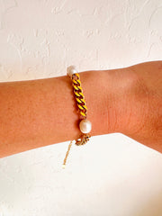 Our popular Cuban chain layering bracelet has been elevated with pearls!