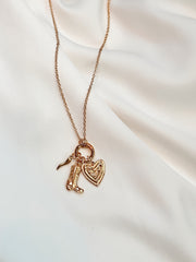 Yeehaw! Add a little western whimsy to your look with this playful charm necklace featuring removable cowgirl boot, heart, and swirl charms. Crafted in gold-plated stainless steel, it lets you mix and match for endless style possibilities. Perfect for stacking or wearing solo, it brings a fun, cowgirl vibe to any outfit.