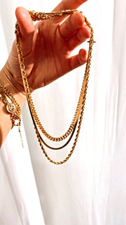This beautiful gold-plated rope chain layering necklace is a stunner when worn by itself or with other necklaces. Trendy, with a hint of a vintage vibe, the unique twisted texture of chain adds the perfect shimmer to your neckline.